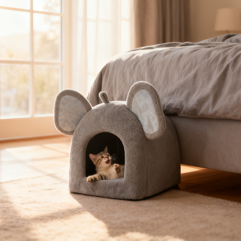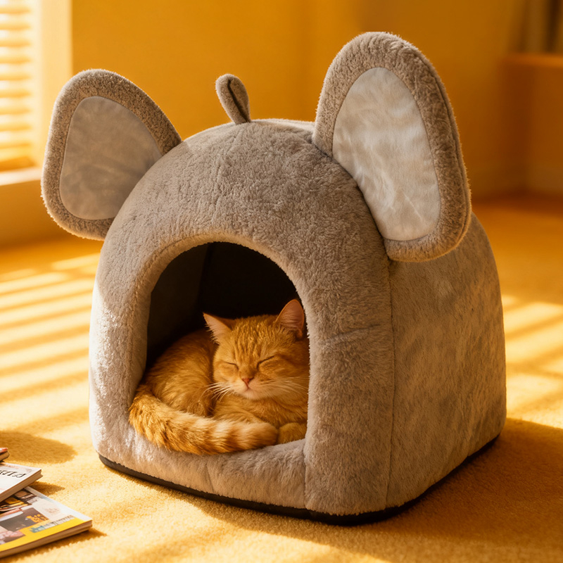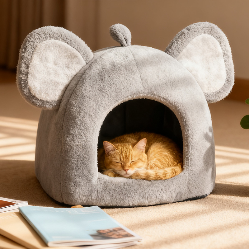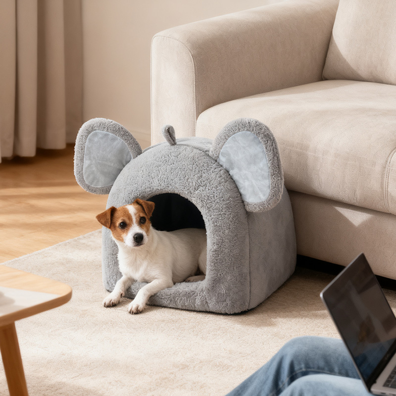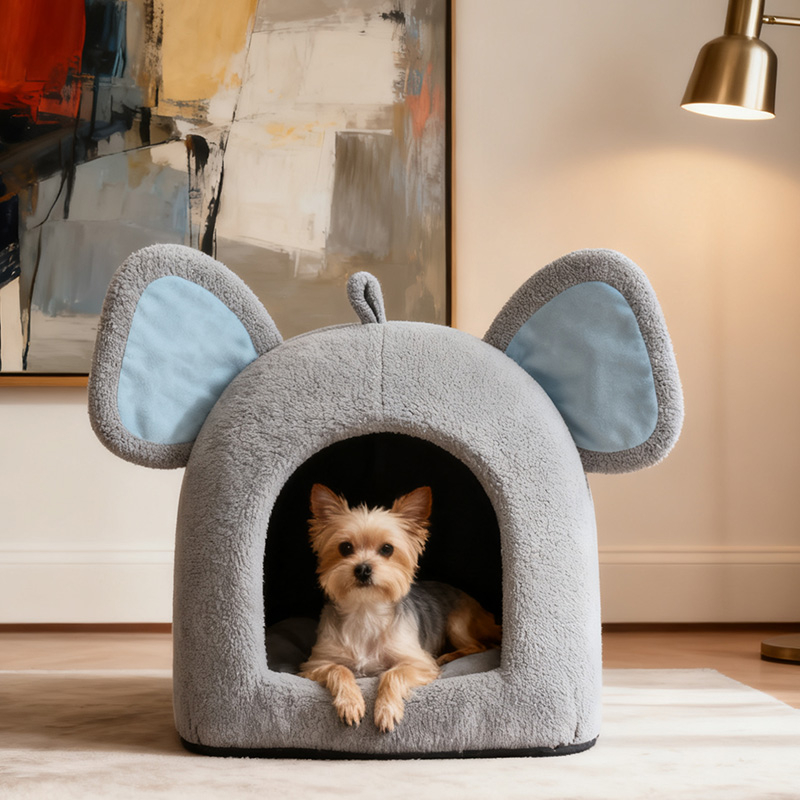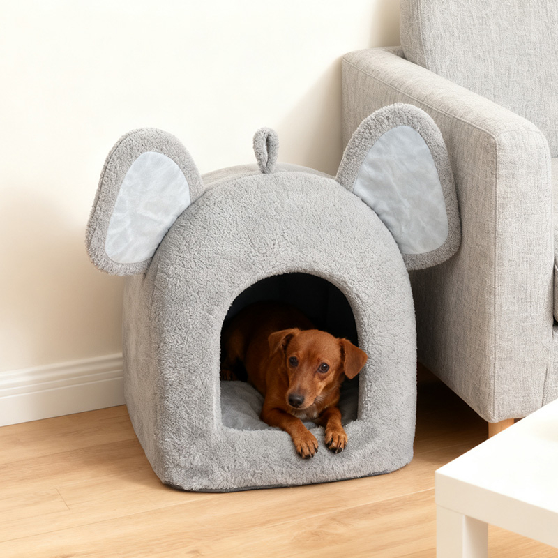 Elephant Nest MY-001 is an adorable elephant-shaped plush pet nest designed for cats and small dogs. Featuring oversized ears, a tiny tail, and a soft gray tone, it combines playful charm with cozy comfort. Made of skin-friendly plush and high-resilience PP cotton, it offers a warm and comfortable space for pets to rest. The semi-enclosed design creates a private little world, satisfying pets’ instinct to hide and relax, while adding a decorative touch to any home.